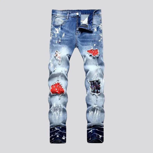 Men's black-patches jeans