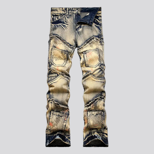 Fashionable mid rise boho men's jeans
